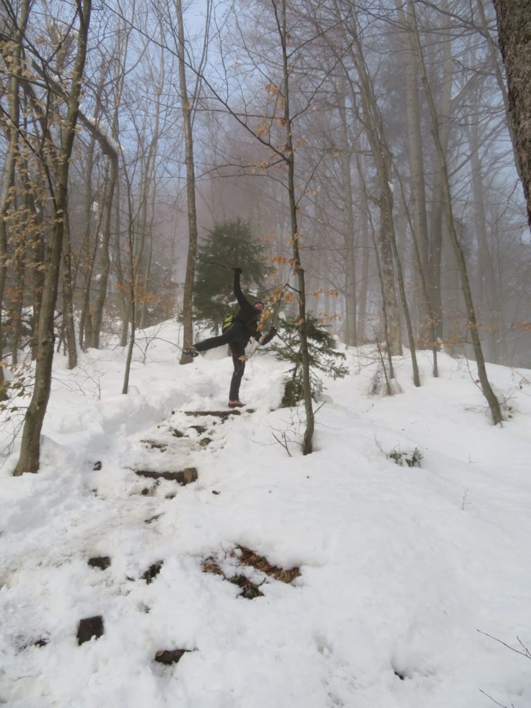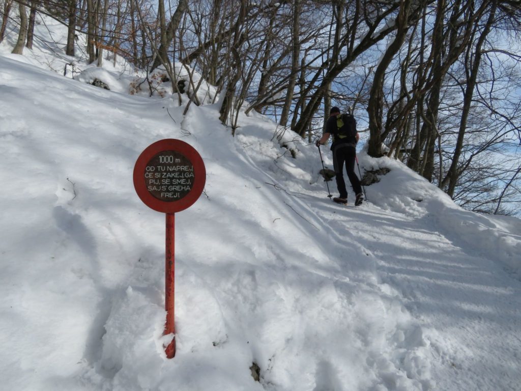S parkirišča za vasjo Gabrovo, kjer je bilo že parkiranih precej avtomobilov, je pot sprva potekala po ozki stezici po gozdu nad lokalno cesto. Nato se je pričela bolj strmo vzpenjati, potekala je po širšem kolovozu. Snega je bilo veliko, vendar je bila pot že dobro uhojena, tako da nepredvidenih težav ni bilo. V Domu na Lubniku je sledilo kratko okrepčilo. Zaradi oblakov in megle velikega razgleda ni bilo, lahko pa smo si ogledali mesti Škofja Loka in Kranj. Nekoliko se je videlo celo do Kamniško-Savinjskih Alp. Nazaj do izhodišča smo se vrnili po poti mimo Starega gradu.