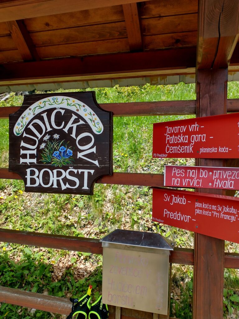 Iz vasi Mače nas je strma pot pripeljala do idiličnega gozdička sredi travnatega pogorja Zaplate, kjer stoji zavetišče v Hudičevem borštu. Za zavetišče skrbi PD Preddvor, v letu 2023 je zavetišče pridobilo naziv naj visokogorska planinska koča.