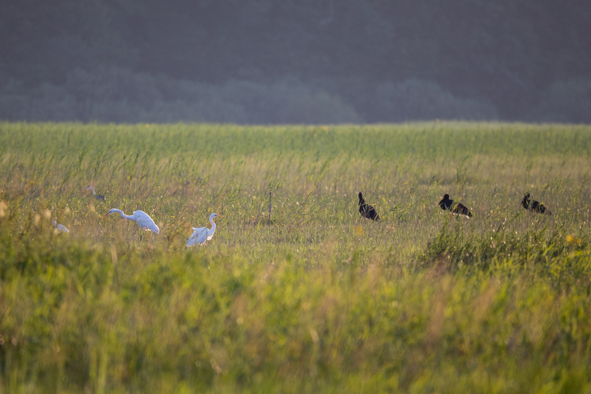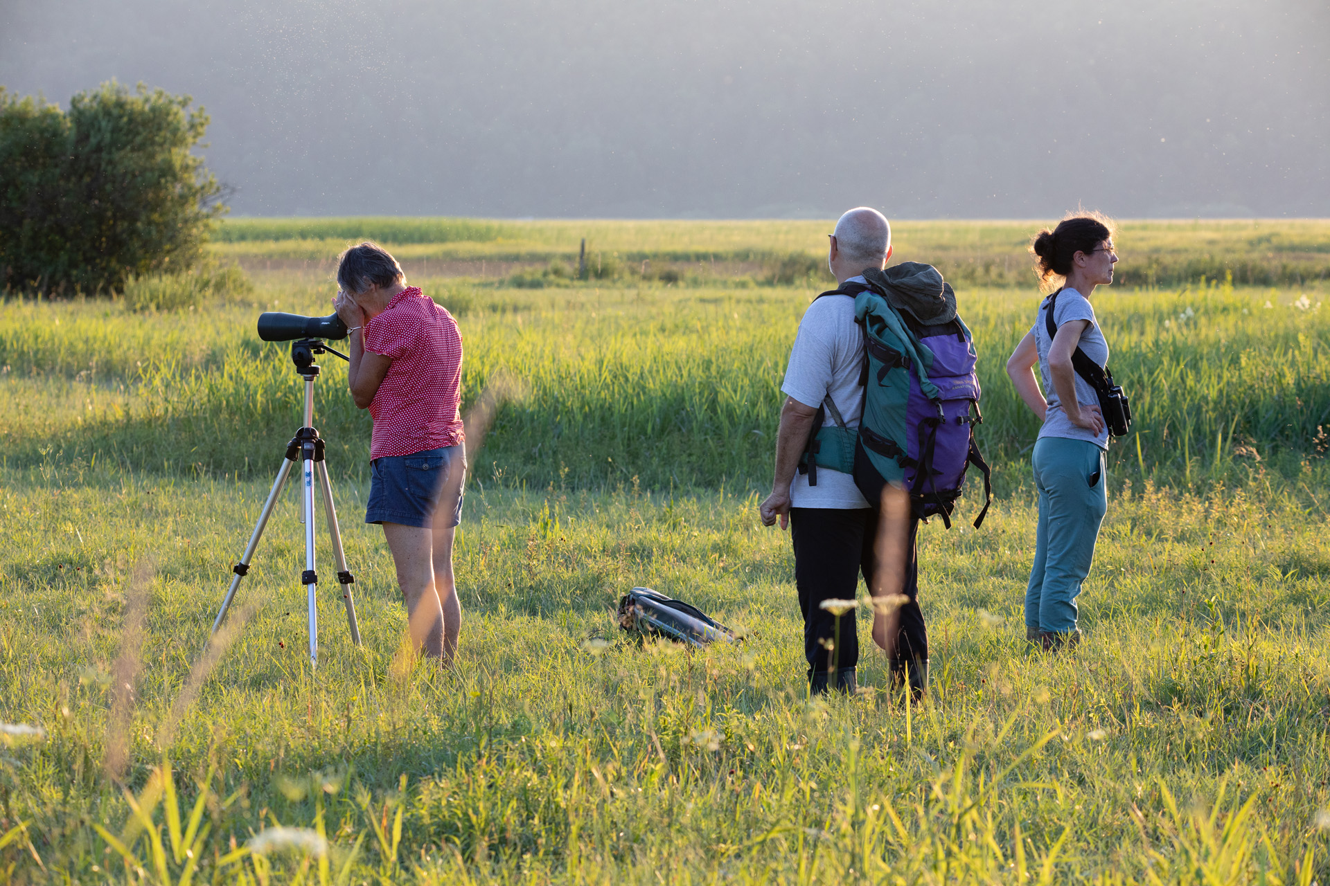 V poznem popoldnevu smo se zbrali pred Informacijskim središčem Notranjskega regijskega parka ob Cerkniškem jezeru. Pod vodstvom ornitologinje Urše Koce smo se usmerili k nekoliko nižje ležečim travnikom. Ti so ob obilnejših padavinah poplavljeni, zatem pa se voda postopno umika in razkriva travišča, ki jih prekinjajo pasovi grmičevja. Tako okolje nudi idealne pogoje za številne ptice kot so rjava penica, trstni strnad, rjavi srakoper, rumena pastirica, bičja trstnica, škrlatec, rumeni strnad, brinovka, črnoglavka, ščinkavec, zelenec, črna štorklja, mala in velika bela čaplja in še bi lahko naštevali. Nekatere od teh vrst smo lahko opazovali, druge smo prepoznavali zgolj po oglašanju, ni pa bilo več prisotnega petja, kakršno je značilno za pomladansko svatbeno obdobje.