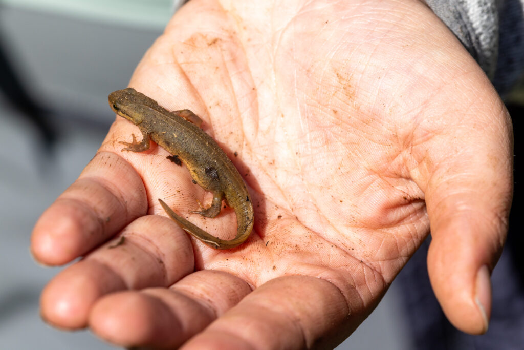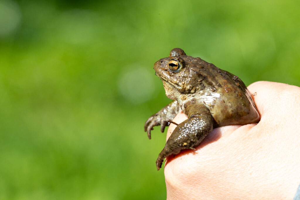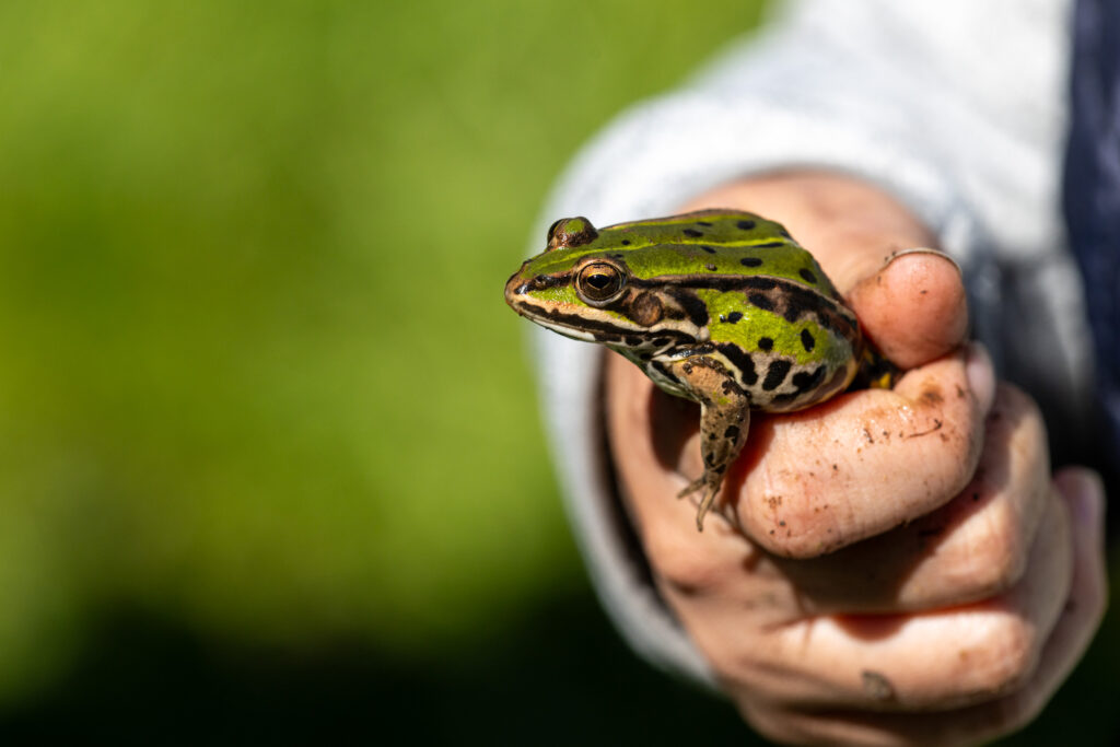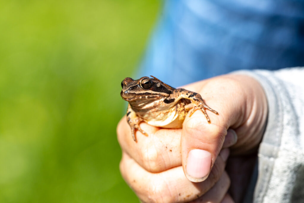 Po ogledu Radenskega polja smo obiskali še Žabjo hišo in se udeležili hands on delavnice o dvoživkah, saj jih na Radenskem polju živi kar enajst vrst! Pogumnejši udeleženci smo z navlaženimi rokami lahko potipali in prijeli krastačo (samčka Francija), sekuljo, rosnico in malega pupka.